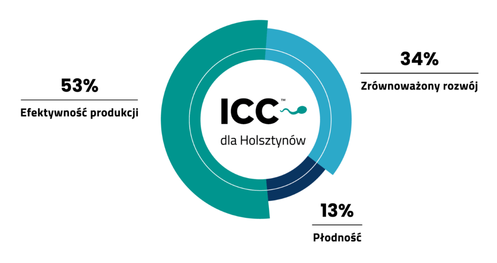 Indeks GENEX ICC™ dla krów rasy Holstein koncentruje się na cechach, które mają wpływ na rentowność i zrównoważony rozwój. Indeks zapewnia zrównoważoną selekcję pod kątem wydajności produkcji, zrównoważonego rozwoju i płodności samic.